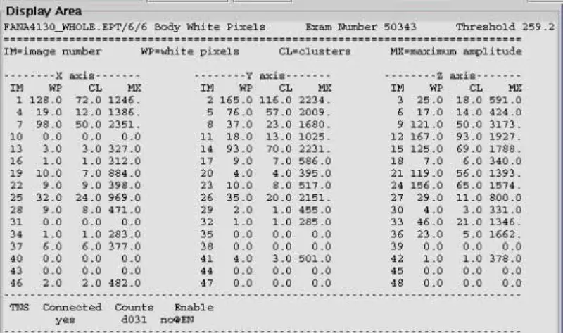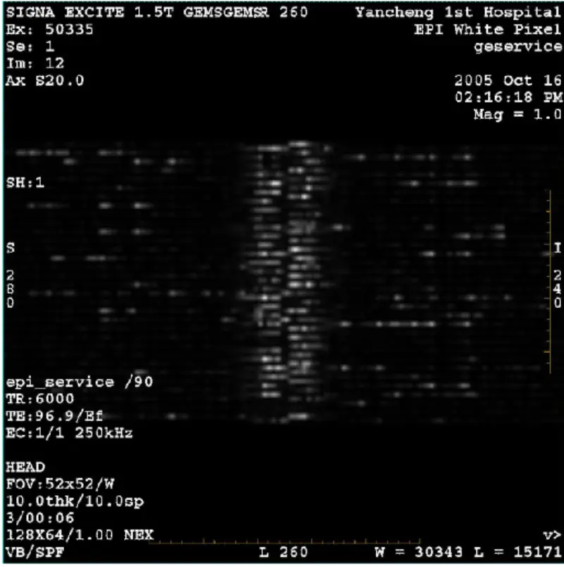 11. Αποσυνδέστε το X,Y και το Z Gradient Drive Fiber Optics στην πλακέτα GP, σάρωση κεφαλής και σώματος λευκού εικονοστοιχείου EPT. το αποτέλεσμα είναι πέρασμα. Δείχνει ότι το λευκό εικονοστοιχείο επάγεται από κλίση. Βλέπουμε ότι το λευκό pixel δεν υπάρχει μόνο σε έναν άξονα. Στη συνέχεια, αντικαταστήστε την πλακέτα SGA PS, GP, αλλά το πρόβλημα παραμένει. Επανασυνδέστε τις οπτικές ίνες X,Y,Z Gradient Drive.