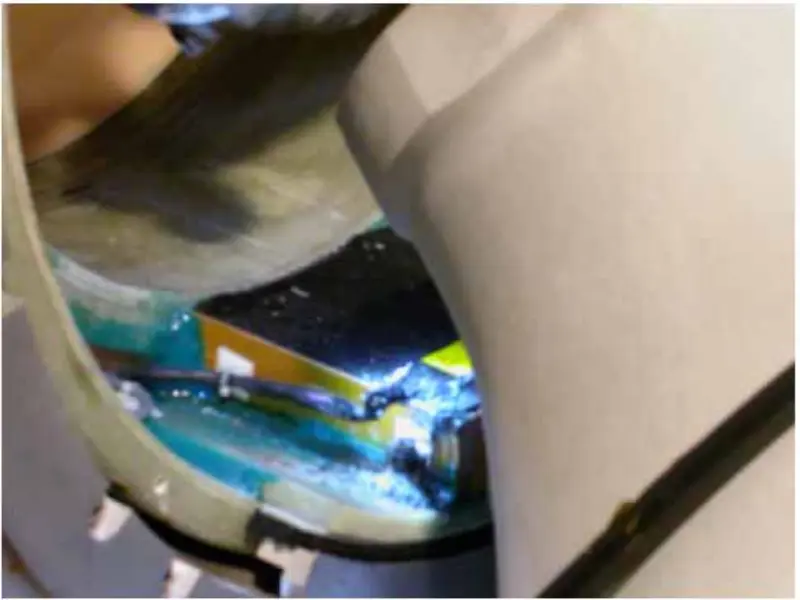 Από την παραπάνω ενέργεια και ανάλυση, συμπεραίνουμε ότι το πρόβλημα πρέπει να προκαλείται από πηνίο κλίσης. Αφαιρούμε λοιπόν το μπροστινό και το πίσω κάλυμμα του μαγνήτη, ελέγχουμε και σφίγγουμε τα μπουλόνια που σχετίζονται με το ντεγκραντέ πηνίο. Αφού αφαιρέσουμε το πίσω κάλυμμα του μαγνήτη, διαπιστώνουμε ότι το υψηλής τάξης καλώδιο του παρτυλίγματος έχει καεί και έχει γίνει μαύρο.